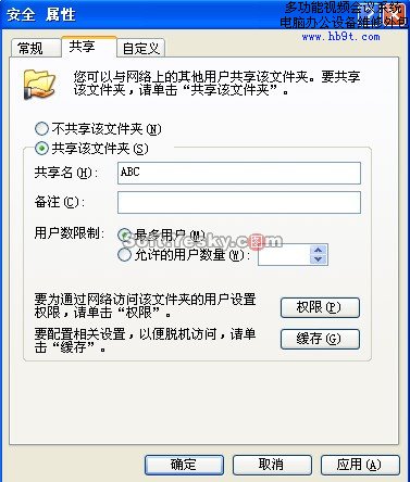 說明:共享特性不適用于Documents and Settings、Program Files以及Windows系統(tǒng)文件夾。此外,您無法在其他用戶的配置文件中共享文件夾。