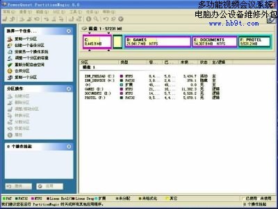 為保險(xiǎn)起見,請?jiān)俅芜\(yùn)行PQ8.0,將IBM_SERVICE分區(qū)隱藏起來。以后需要更新Winxp.gho文件的時候可以再取消隱藏屬性就行了。
